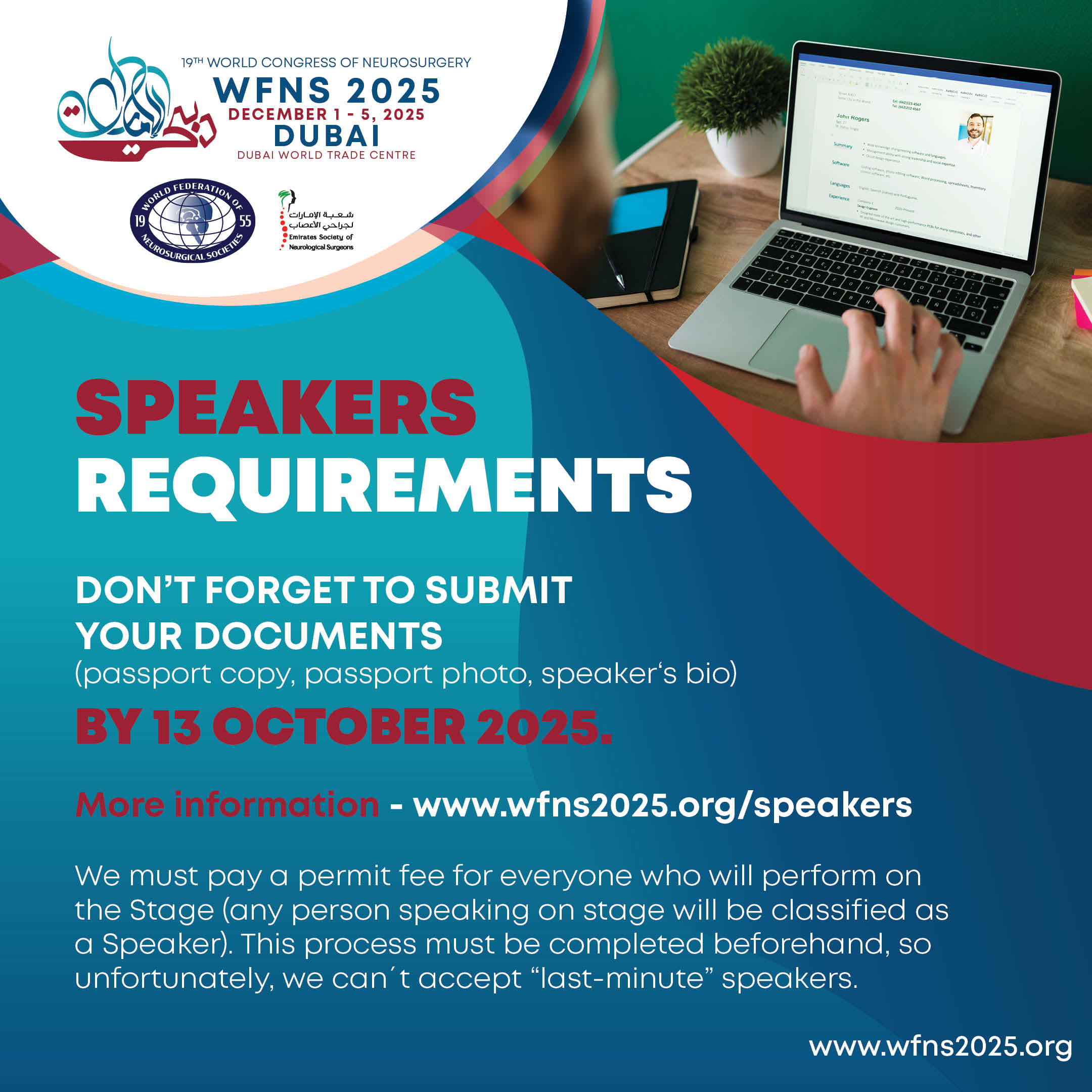 This is the official website of the 19th World Congress of Neurosurgery. The only congress organized by the World Federation of Neurosurgical Societies (WFNS) in 2025 will take place in Dubai. Beware of scam websites.